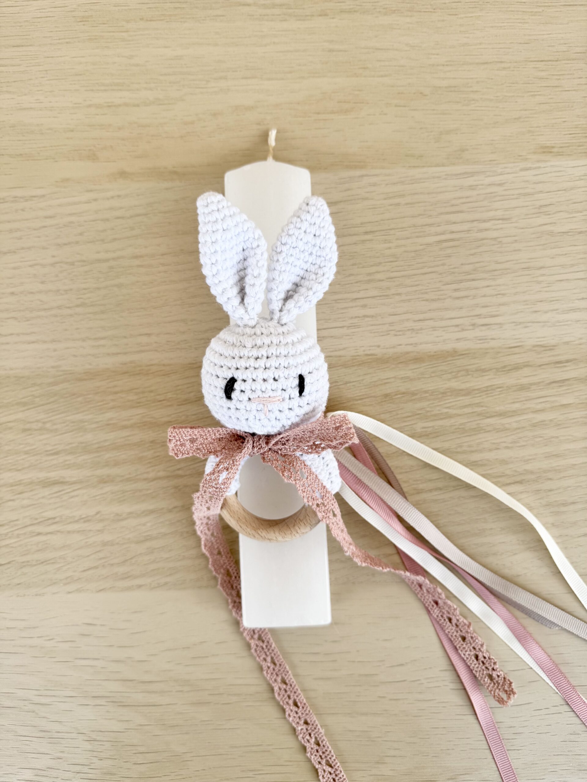 Η λαμπάδα bunny white είναι ένα υπέροχο δώρο που μπορεί να προσφέρει η νονά και ο νονός στο βαπτιστήρι τους αυτό το Πάσχα.