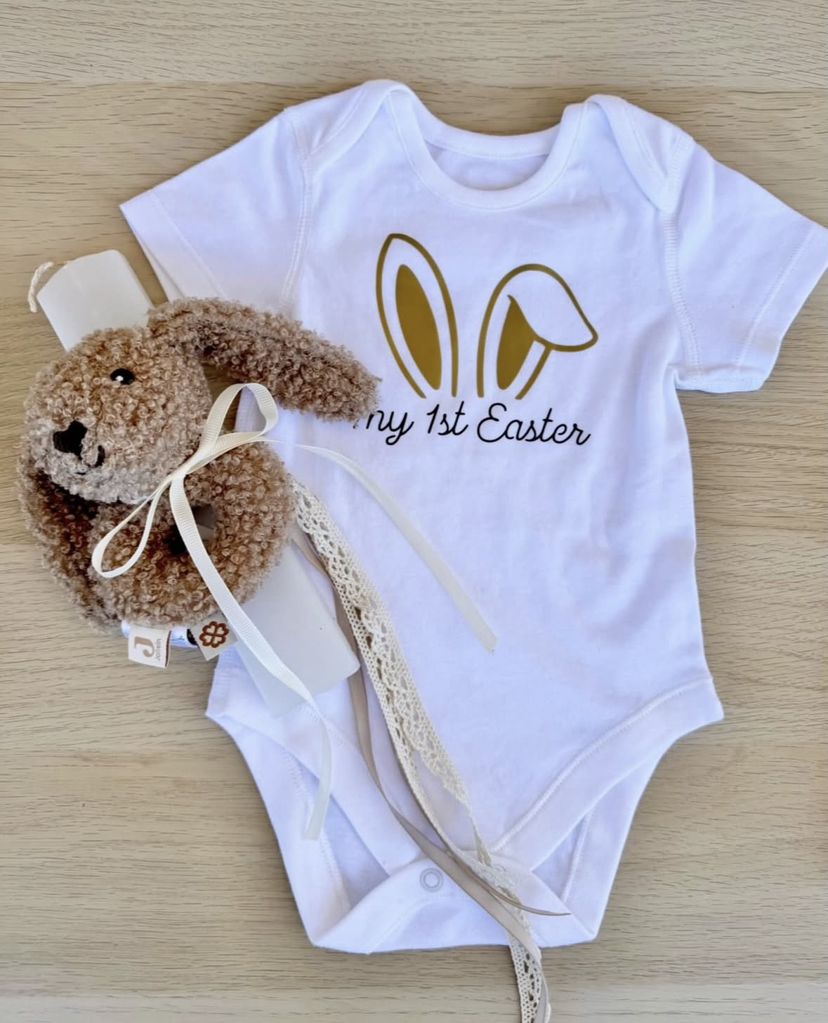 - Φορμάκι βαμβακερό με μήνυμα “my 1st Easter”, επιλογή μεγέθους στα σχόλια της παραγγελίας