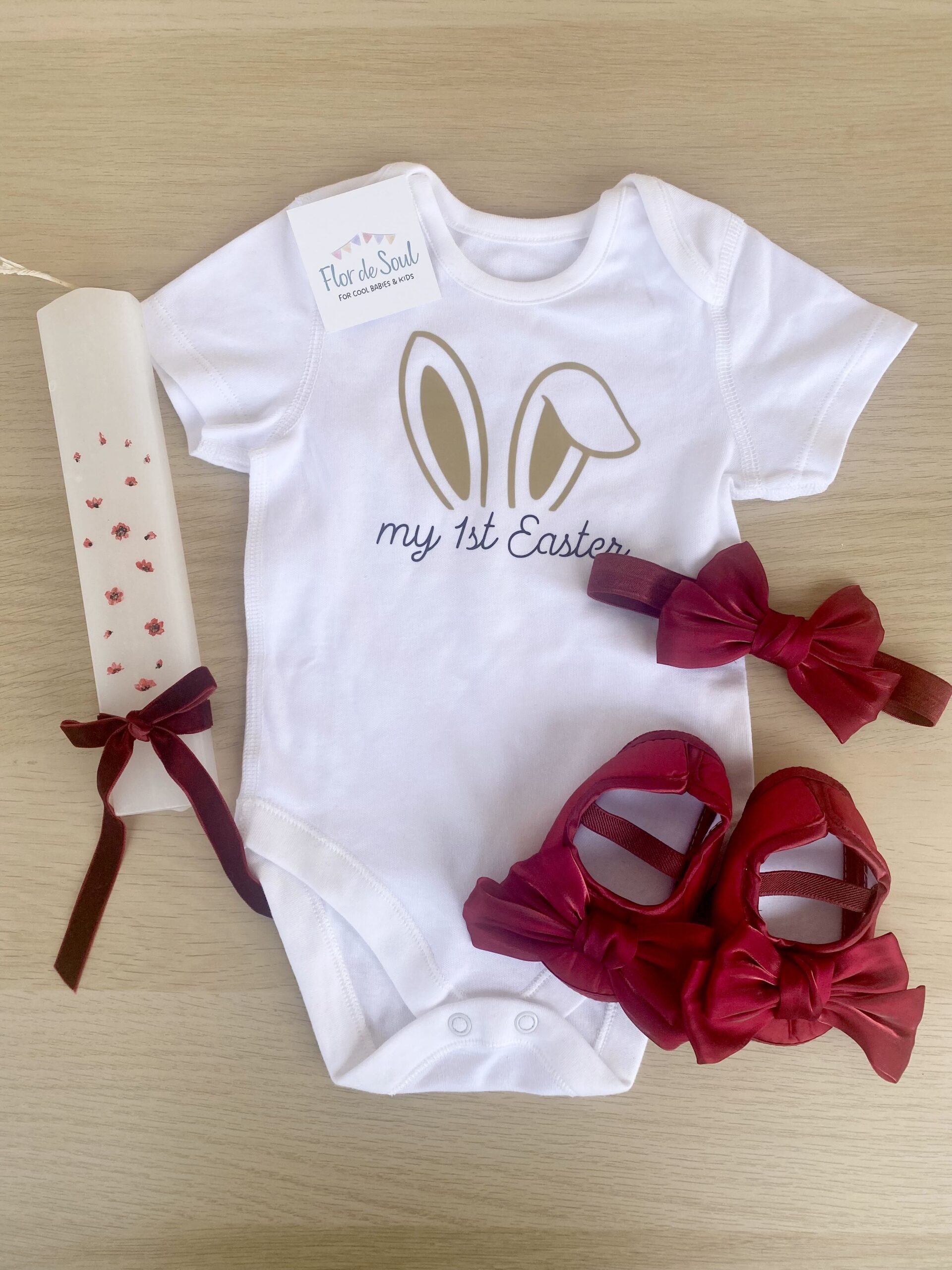 - Φορμάκι βαμβακερό με μήνυμα “my 1st Easter”, επιλογή μεγέθους στα σχόλια της παραγγελίας