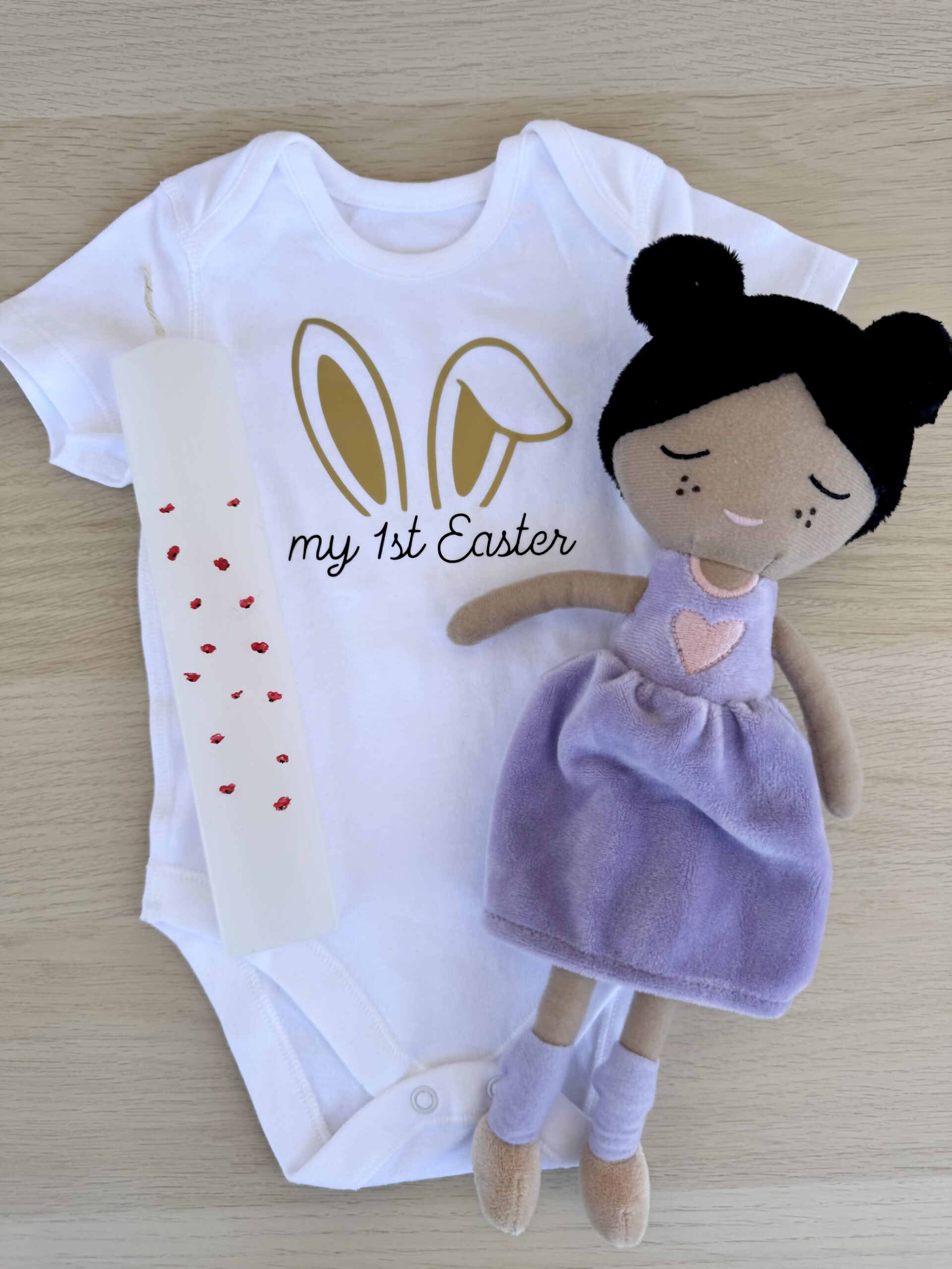 - Φορμάκι βαμβακερό με μήνυμα “my 1st Easter”, επιλογή μεγέθους στα σχόλια της παραγγελίας